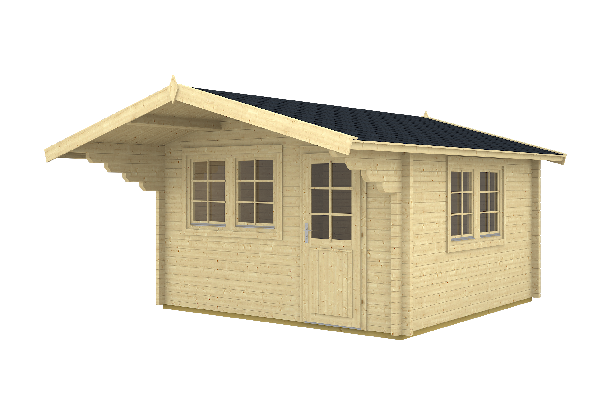 Cena zahrnuje dveře a okna s prosklením vyrobená z lepeného lamelového dřeva, práh z nerezové oceli, impregnované základové nosníky, spojovací materiál a návod k montáži. Cena nezahrnuje přepravu a střešní krytinu.
