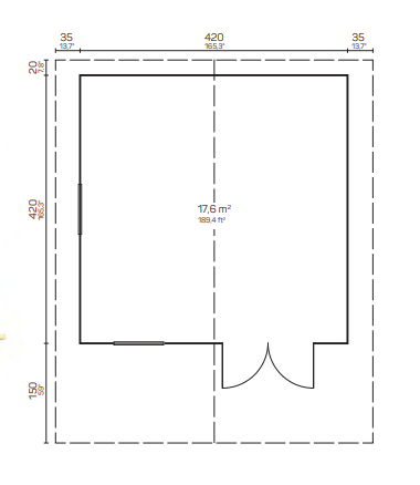 Enthalten sind eine Doppeltür und Fenster aus Brettschichtholz mit verglaster Einheit, eine Edelstahlschwelle, imprägnierte Fundamentbalken, Befestigungselemente und eine Montageanleitung.