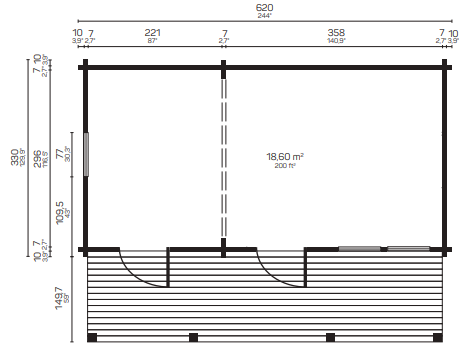 Price includes laminated wood doors and windows with double glazing, stainless steel threshold, impregnated foundation beams, fasteners and installation instructions.