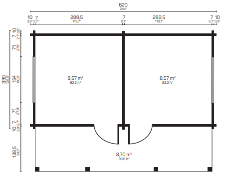 Seinäpaksuudeltaan tuotepiirustuksen mukaisesti 70 mm Pihatuuri-pihamökkipaketti sisältää: