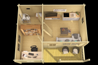 Include una porta e finestre dotate di unità vetrata e realizzate in legno lamellare, soglia in acciaio inossidabile, travi di fondazione impregnate, elementi di fissaggio e istruzioni di installazione.