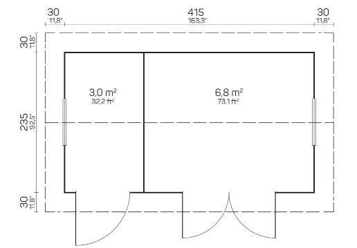 Cena zawiera drzwi z drewna klejonego wykończone deskami, okna z przeszkleniem, próg ze stali nierdzewnej, podłogę o grubości 28 mm, zaimpregnowane belki podwalinowe, łączniki oraz instrukcję montażu. Cena nie zawiera pokrycia dachowego i kosztów transportu.