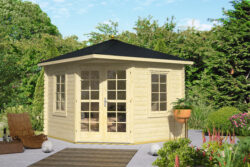 Hinnas liimpuidust klaaspaketiga uks ja klaaspaketiga aknad, roostevabast plekist lävepakk, immutatud vundamendiprussid, kinnitusvahendid ja paigaldusjuhend.