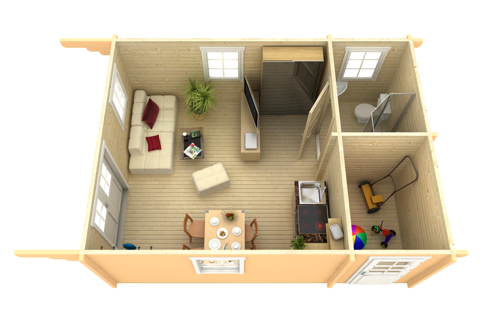 Tene aia- ja puitmajade tehases toodetud 70 mm aiamajade, palkmajade, varjualuste, paviljonide, saunade, suvemajade, grillkodade ja puidust garaažide komplekti kuuluvad uksed, aknad, põrand, kinnitusvahendid ja paigaldusjuhend, mis teeb aiamaja ehitamise lihtsaks ja vähe aeganõudvaks.