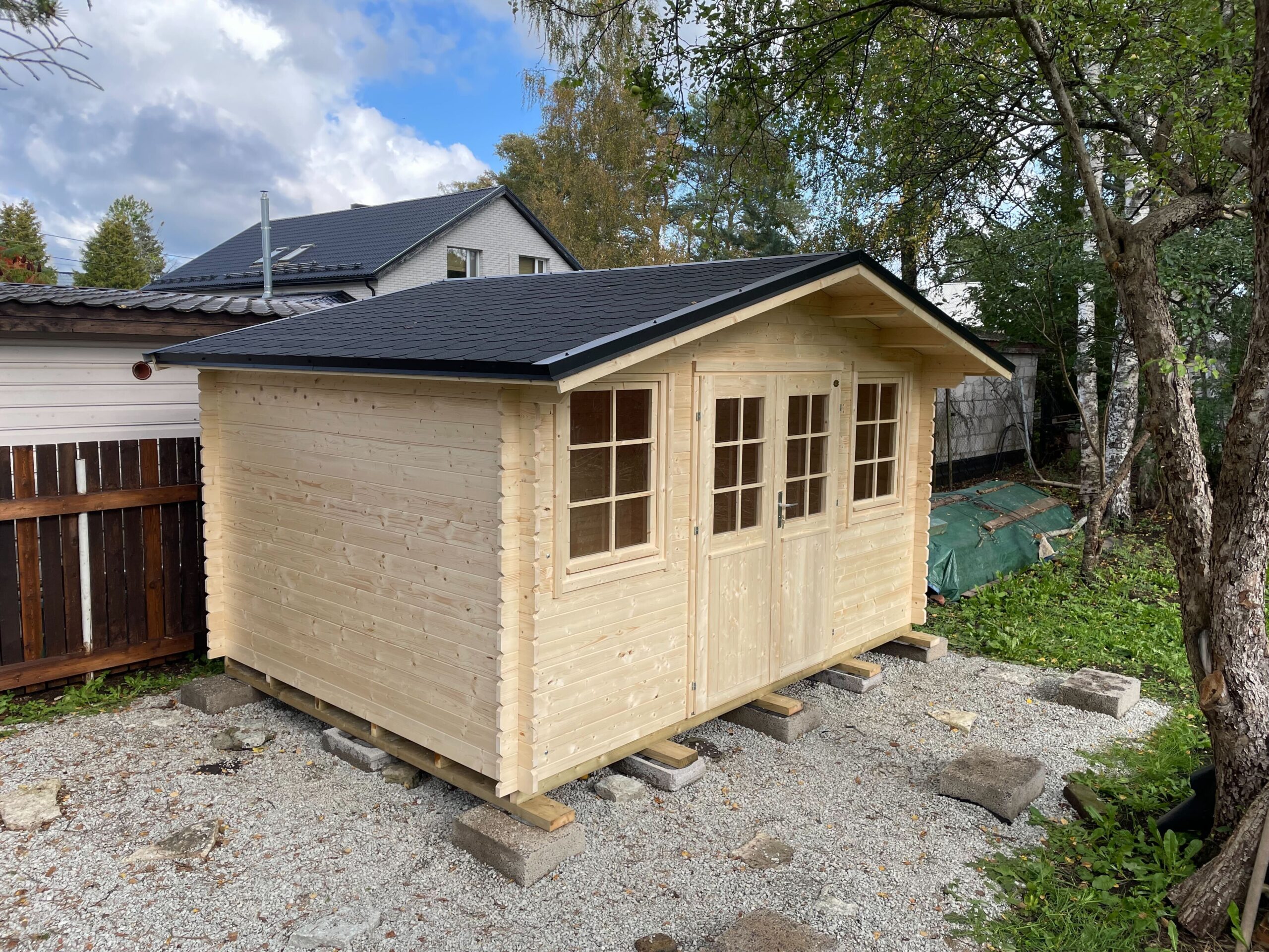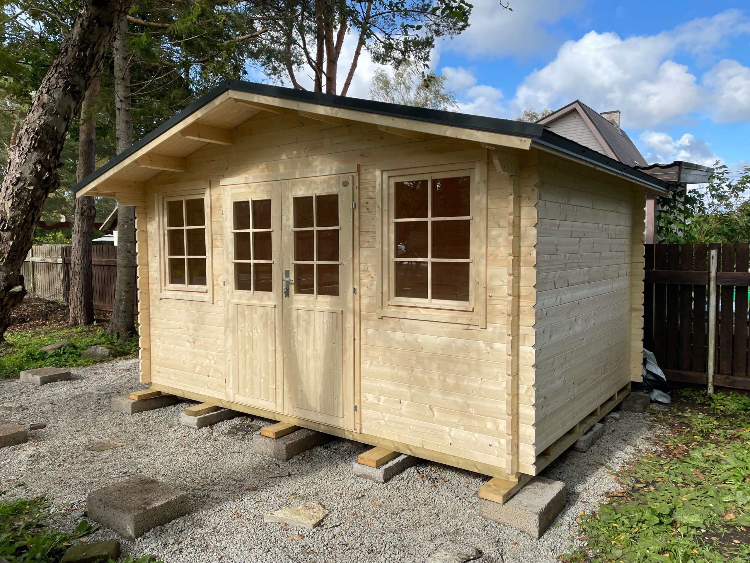 Tene 28 millimeetrise seinapaksusega aiamaja komplekti vastavalt mudelile kuulub: