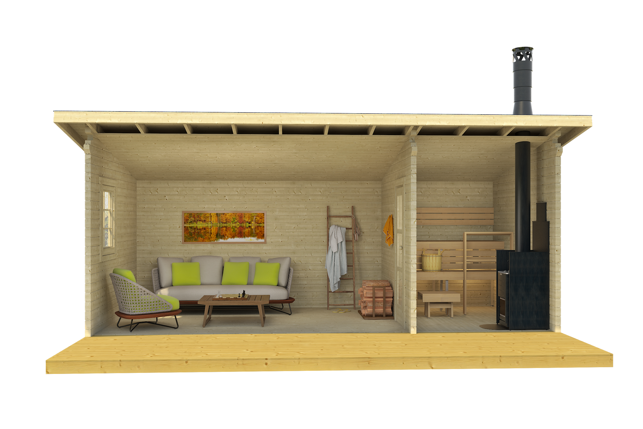 - Saunamaja on topelt katuselaudisega, võimaldab lisada 50 mm soojustust (soojustusmaterjal ei kuulu hinda)